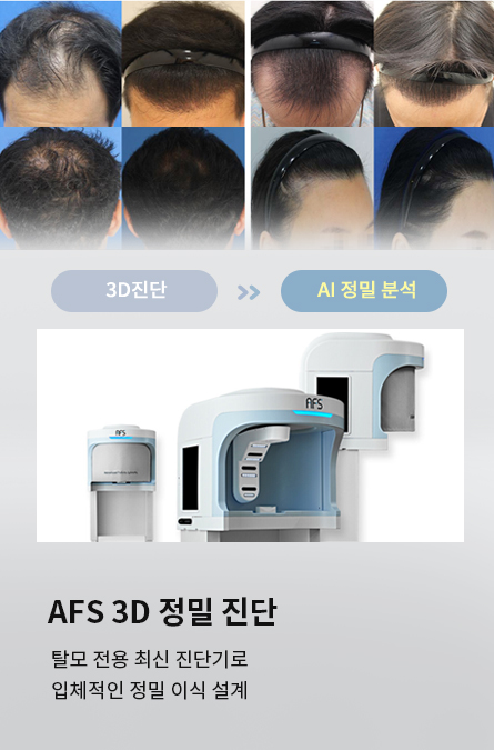 모발, 두피 3D 스캐닝 하는 탈모 전용 AI 진단기로 정확하게 분석하고 제대로 이식 설계합니다.