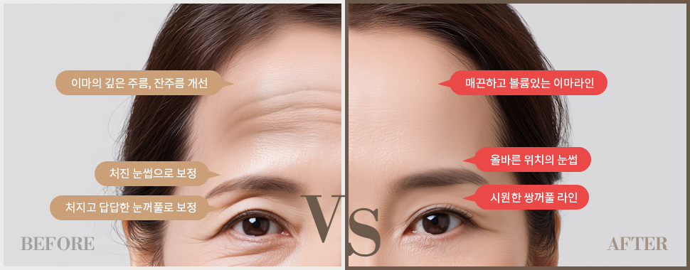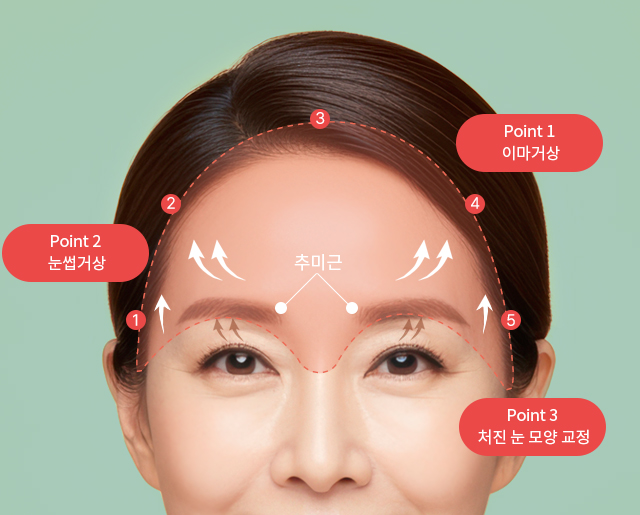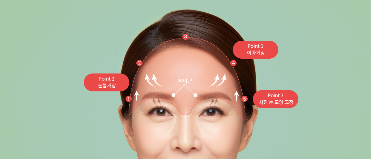 이마 - 눈썹 - 눈 모양의 완벽한 조화를 찾는 섬세한 리프팅
