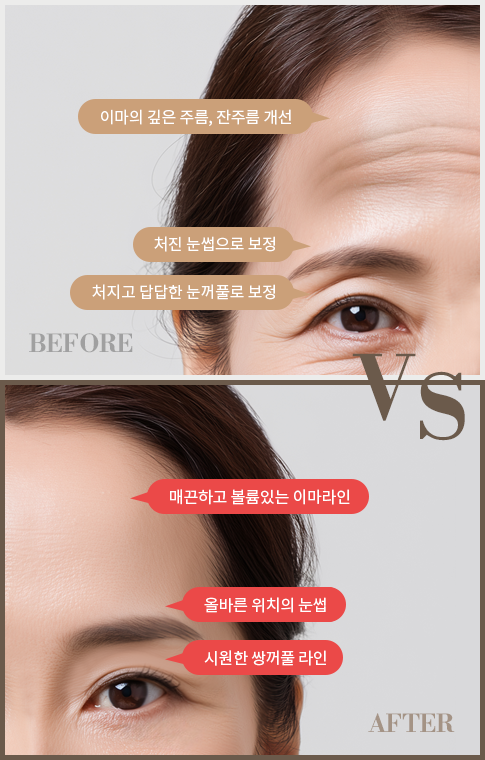 이마, 처진 눈꺼풀,을 동시에 개선하고 싶은 분