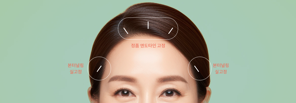 | 삼각형 판 형태의 엔도타인을 이마 뼈에 삽입해 조직을 넓게 고정 |