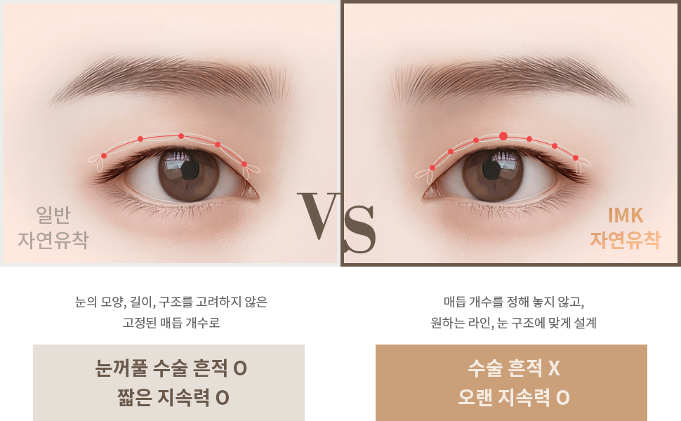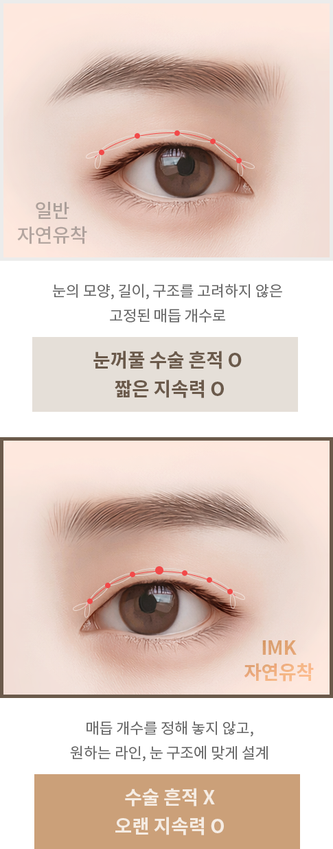 | 기존 자연유착 쌍꺼풀 | IMK 자연유착 쌍꺼풀 | |