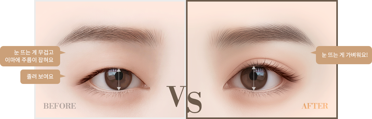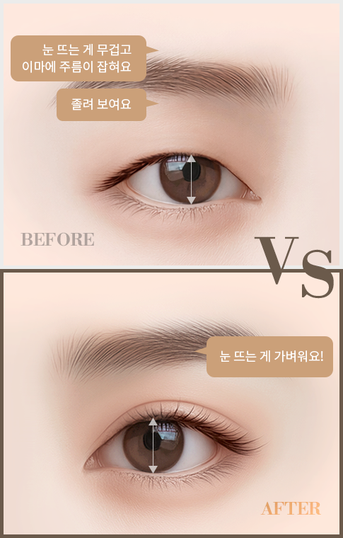 | 눈 안 감김, 안구 건조증 | 쌍꺼풀 라인과의 부조화 |