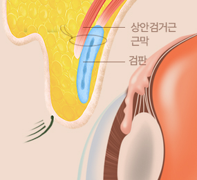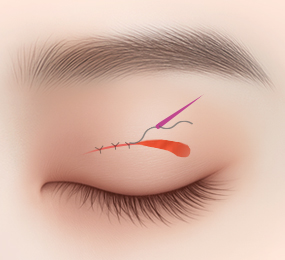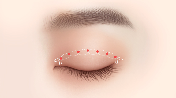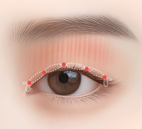 | 수술 방법 | 디자인 된 쌍꺼풀 라인을 따라 작은 홈을 내어 근육과 피부를 매듭지어 라인 완성 |