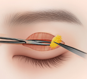 디자인 된 쌍꺼풀 라인을 따라 불필요한 피부 및 연부조직을 미세제거 후 눈뜨는 근육을 당겨서 봉합 |