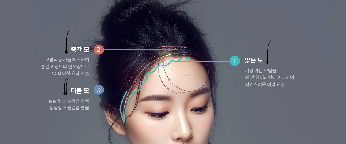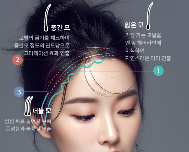 얼굴형과 이마, 두피, 모발 상태를 고려하여
