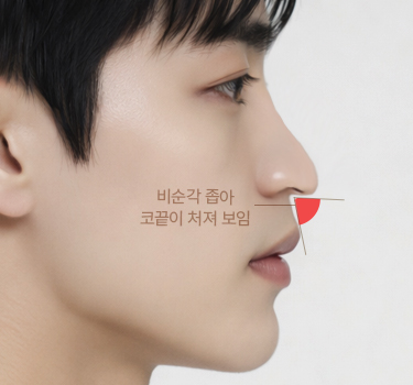 비순각이 좁아 코가 길고 처져 보임