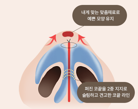 날개연골의 충분한 이완과 고정으로 세련된 코끝, 비주라인