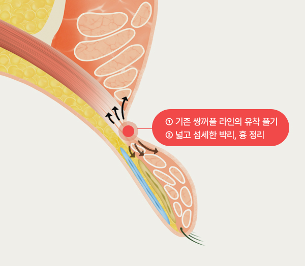 층별로 섬세하게 박리해 기존 흉터를 정리합니다.