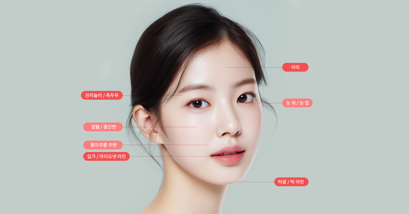 이마 · 관자놀이 · 앞볼·팔자가 꺼져 나이 들어 보이는 분