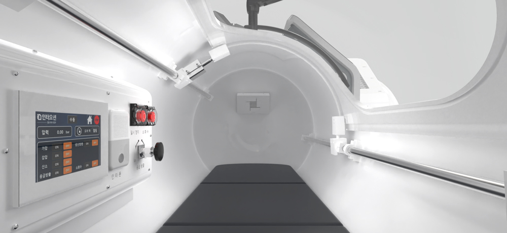고압산소 치료 챔버 내 2~2 기압일 때
