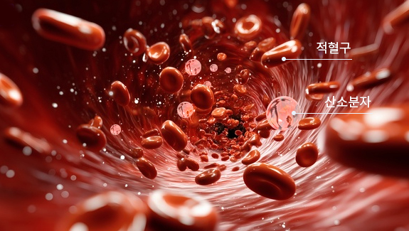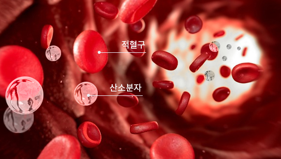 산소 분자 그대로 혈액속으로 녹아들면서